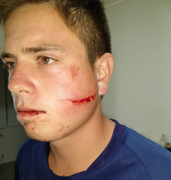 Se habla de un piedrazo en la cara, mientras que otra versión se refiere a una trompada con una manopla de hierro