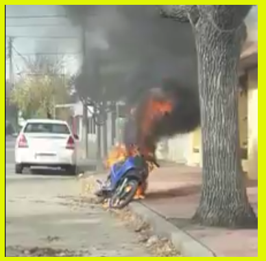 El 2/5/19 siendo las 10.55 horas se recibe llamado en nuestra guardia de emergencias dando aviso de incendio de motocicleta en calles Maipú y Soler concurre al lugar una dotación de 6 bomberos a cargo del sargento Walter Castro. Bomberos realizó tarea de extinción de llamas y enfriamiento.