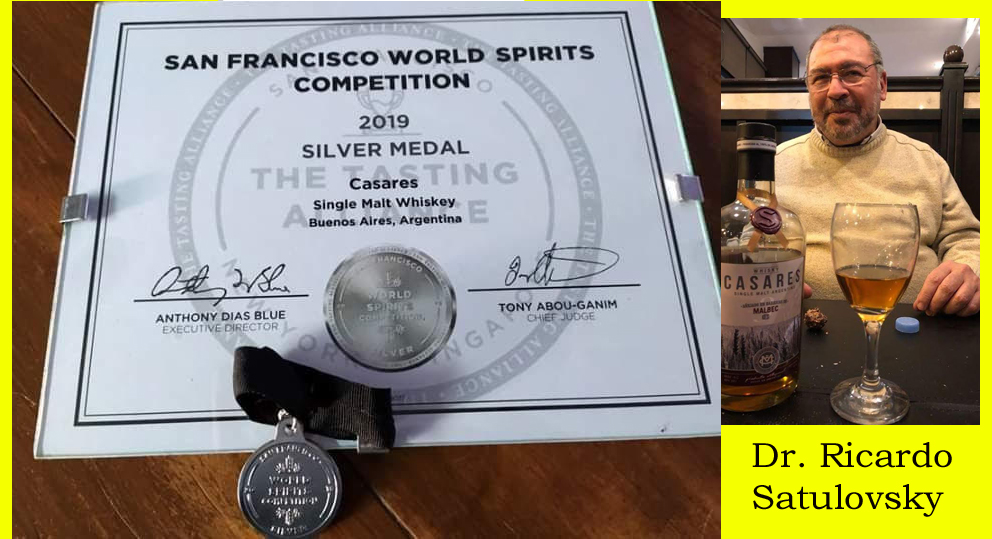 Satulovsky acaba de ser premiado por tercera vez en el San Francisco World Spiriti Competition, que es una competencia mundial de licores y vinos que evalúa a cientos de participantes anualmente. Tras una prolija y meticulosa labor del jurado, el Whisky Casares producido por Ricardo Satulovsky acaba de obtener en la versión 2019 de esa competencia mundial, la Medalla de Plata, que ubica al whisky casarense entre los mejores del mundo. ¡Felicitaciones!.