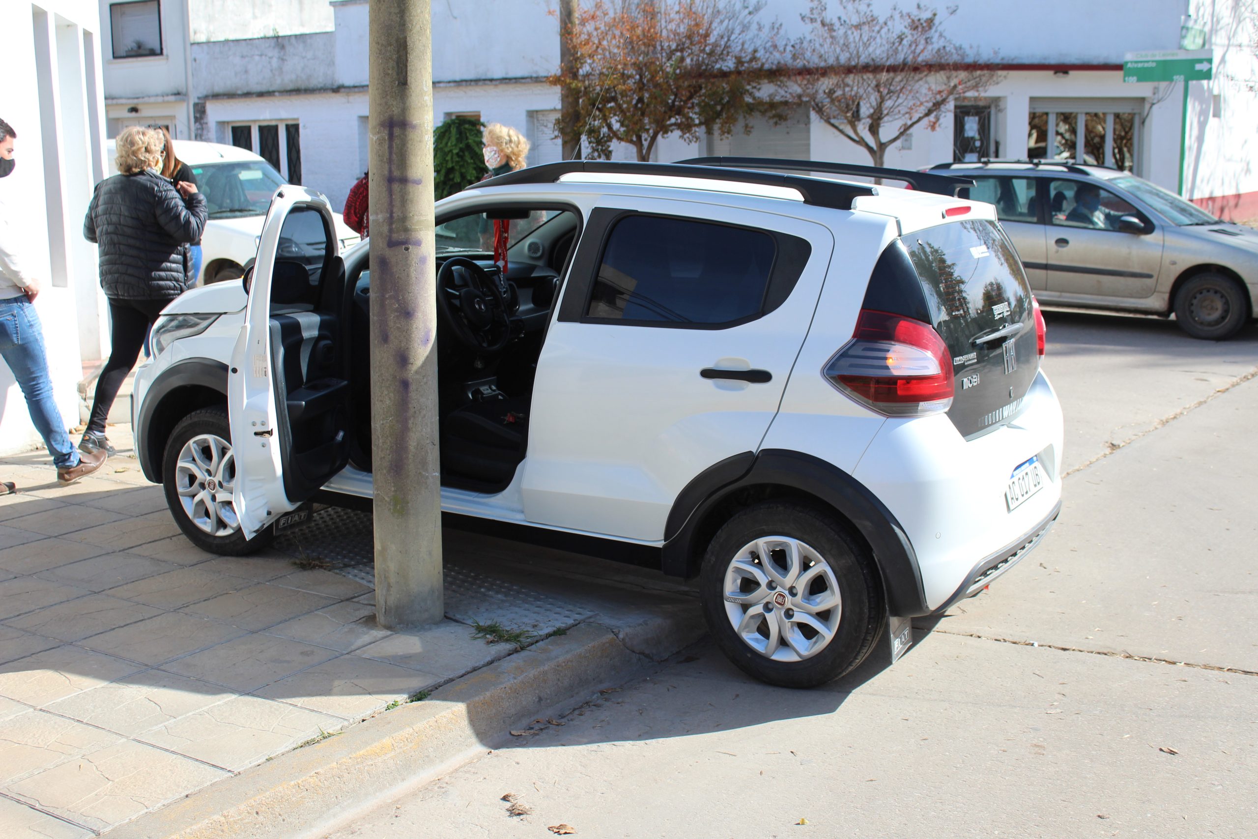 entre un Astra conducido por Analía Álvarez, vecina de la localidad de Bellocq, quien impactó contra un Fiat Uno conducido por  Rubén Cabrera, quien luego del impacto perdió el control de su vehículo el cual terminó en la vereda de la Veterinaria La Tranquera.