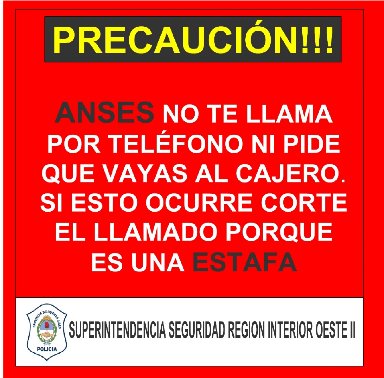 POR TAL MOTIVO SE SOLICITA QUE ANTE CUALQUIER SOLICITUD DE DOCUMENTACION PERSONAL O REFERENTE A CUENTAS BAN-CARIAS NO BRINDEN NINGUN TIPO DE DATOS, CORTANDO INMEDIATA-MENTE COMUNICACIÓN.