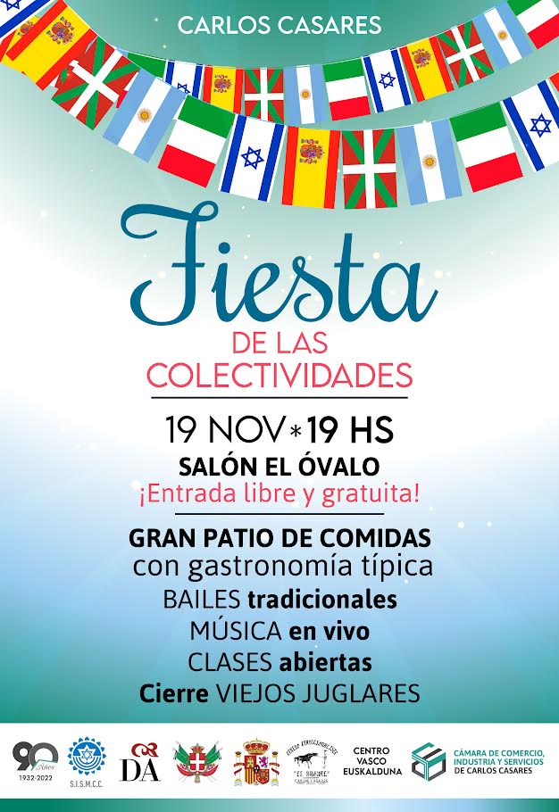 En el marco de los festejos por los 90 años de la institución, la Cámara de Comercio, Industria y Servicios de Carlos Casares, organiza la Fiesta de las Colectividades, junto a la Sociedad Italiana, la Sociedad Española, la Sociedad Israelita, la Dante Alighieri, el Centro Vasco Euskalduna y el Centro Tradicionalista «El Bagual».